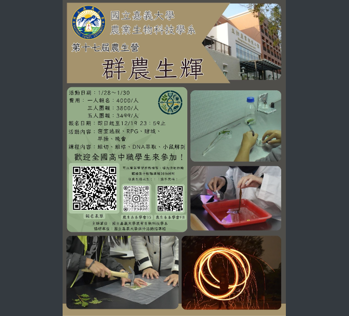 農生營宣傳海報Post author:ashs510Post published:10/14/2025Post category:公告來文 / 教務處公告公文製作-21下載下載-1-1下載 Post Views: 31相關內容國家科學及技術委員會辦理首屆「AI 創新獎」(AIInnovation Award)」03/27/2025高雄醫學大學「107級畢業生成果展 香集市」活動訊息04/07/2022高雄市114學年度國民中學學術性向資賦優異學生鑑定簡章02/05/2025