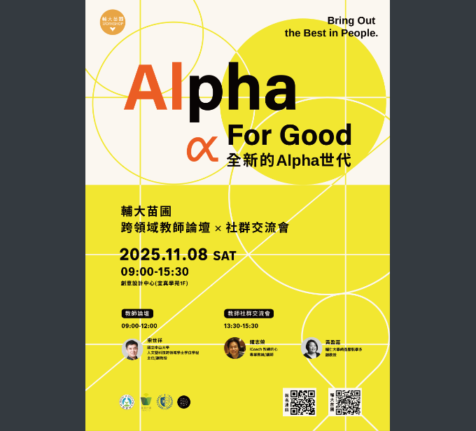【Alpha For Good:全新的Alpha世代】跨領域教師論壇&社群交流會Post author:ashs510Post published:10/20/2025Post category:3. 教師研習 / 公告來文 / 教務處公告公文製作-39下載下載-12下載 Post Views: 11相關內容國立高雄餐旅大學-【高級中等學校學生預修大學第二外語課程】08/09/2023113年12月份校安通報交通意外事件分析報告02/03/2025國立屏東大學112學年度學士班特殊選才招生資訊11/03/2022