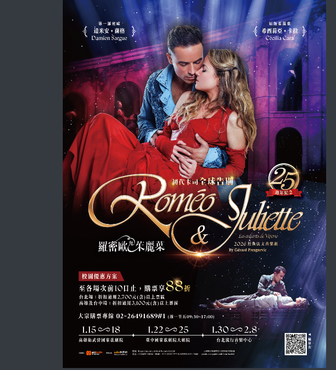 經典法文音樂劇《羅密歐與茱麗葉》表演活動Post author:ashs520Post published:10/30/2025Post category:4. 活動&競賽經典法文音樂劇《羅密歐與茱麗葉》下載經典法文音樂劇《羅密歐與茱麗葉》1下載 Post Views: 9相關內容2026 華梵大學〈大觸特觸全國高中職設計競賽〉10/20/2025第13屆全國法規資料庫法規知識王網路闖關競賽活動10/13/2021「2023韓國WICO世界發明創新競賽」03/11/2023