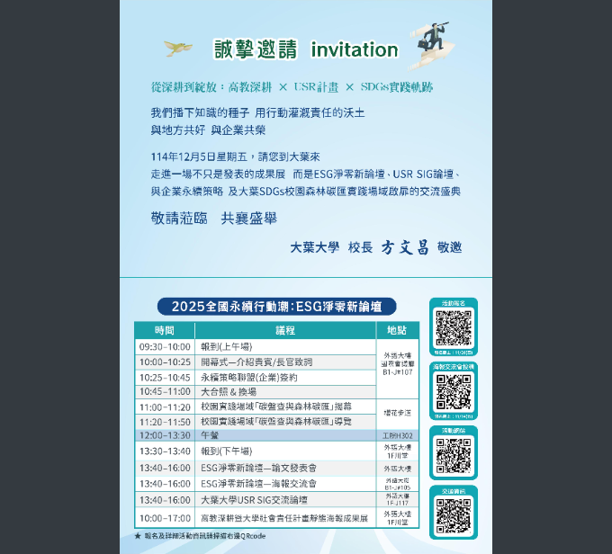 「114年度高教 深耕/USR計畫成果發表會」、「2025全國永續 行動潮:ESG淨零新論壇」議題徵稿Post author:ashs510Post published:11/05/2025Post category:3. 教師研習 / 公告來文 / 學生事務 / 教務處公告公文製作-3下載4D6963726F736F667420576F7264202D20323032352045534720B262B973B773BDD7BEC22DAEFCB3F8A5E6AC79B77C20BC78BD5ABBA1A9FA4F4B_下載d625c4a3-1158-48f3-8776-49a83a75bf1d下載下載下載 Post Views: 13相關內容AERC2022亞洲機器人運動競技大賽10/11/2022國教署委託國立高雄師範大學辦理「跨國銜轉學生之華語文能力快篩測驗申請」10/07/2024「教育部國民及學前教育署補助急困學生三○二專戶管理要點」11/01/2024