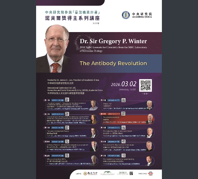 公告中央研究院參與「臺灣橋梁計畫」(TAIWAN BRIDGES)邀請諾貝爾獎得主葛瑞格利.溫特(Gregory P. Winter)博士爵士蒞院發表專題演講教務處Post author:nknush21Post published:2026-02-11Post category:公告 / 教務處公告公文製作-15下載下載-6下載 Post Views: 22