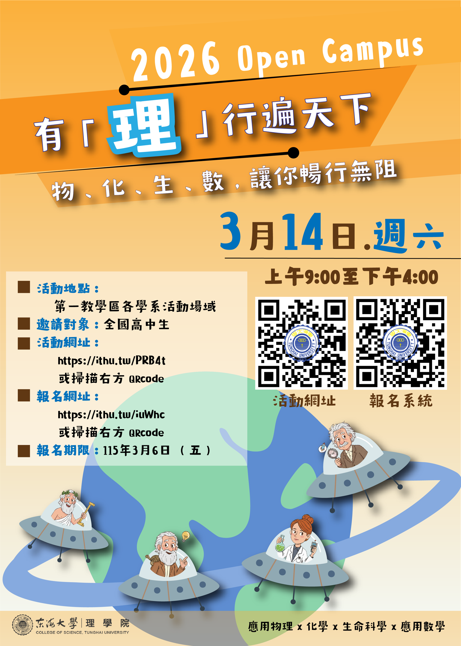 公告 東海大學「2026年Open Campus 有『理』行遍天下,物.化.生.數.讓你暢行無阻」 輔導室Post author:nknush13Post published:2026-02-12Post category:公告 / 各大學校系博覽會/開箱日 / 家長事務 / 處室公告 / 輔導室公告 / 高中來文本文_115B000149_04150544562下載來文附件_115B000149_1_04150544562下載來文附件_115B000149_2_04150544562下載來文本文_115BC00187_06172844831-1下載 Post Views: 2