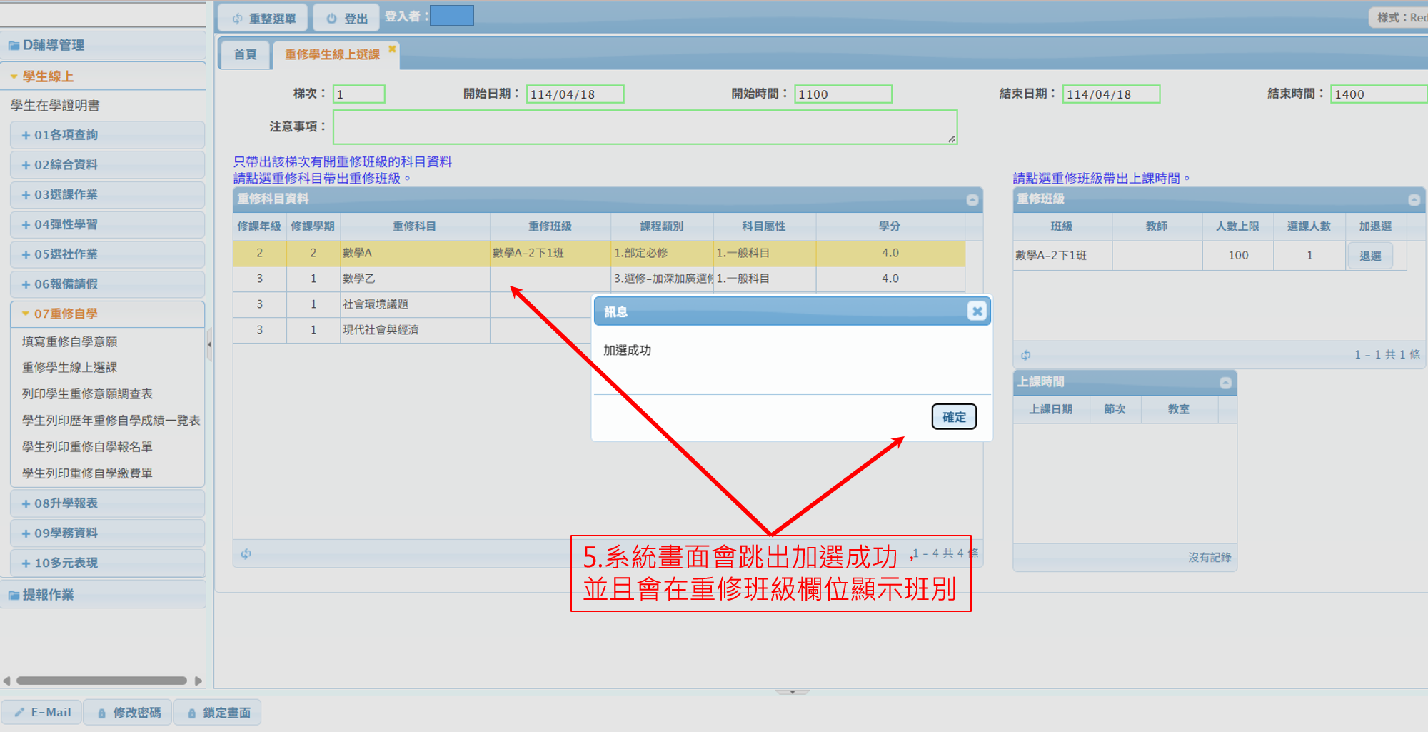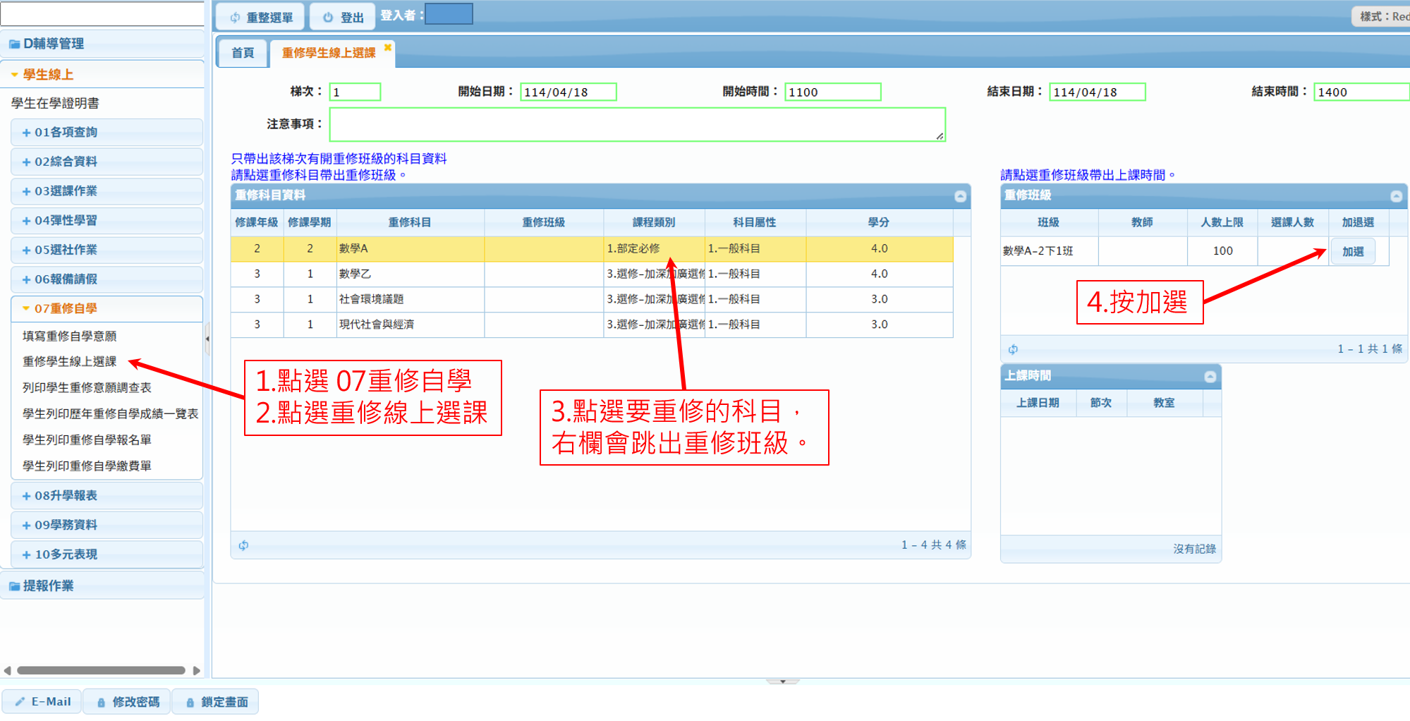 公告教學組114學年度第2學期學期間重補修報名流程Post author:ashs511Post published:2026-03-11Post category:公告 / 教務處公告 / 教學組 / 頭條消息 / 高中本次開課範圍:開設課程為前一學年度之高一下、高二下之2學分內的課程。3學分以上之課程會於暑假另辦。114學年度第2學期重補修報名流程下載圖片1下載圖片2-1下載 Post Views: 334