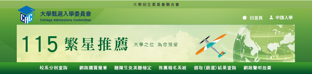 115學年度大學「繁星推薦」招生校系參採「學科能力測驗科目」一覽表